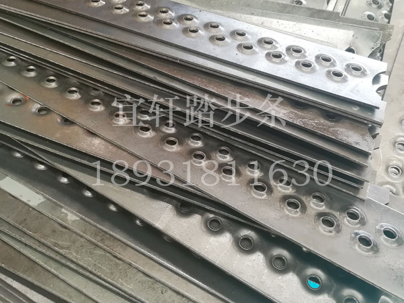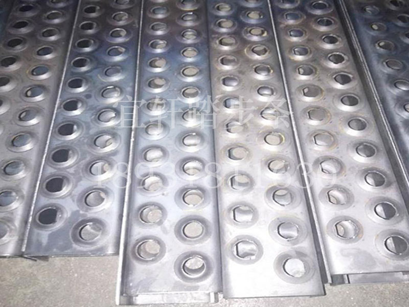 鳄鱼嘴爬梯踏板条具有非常好的承重和防滑效果,在很多爬梯,脚蹬梯上被使用.孔型有鳄鱼嘴孔型和圆形鱼眼孔.